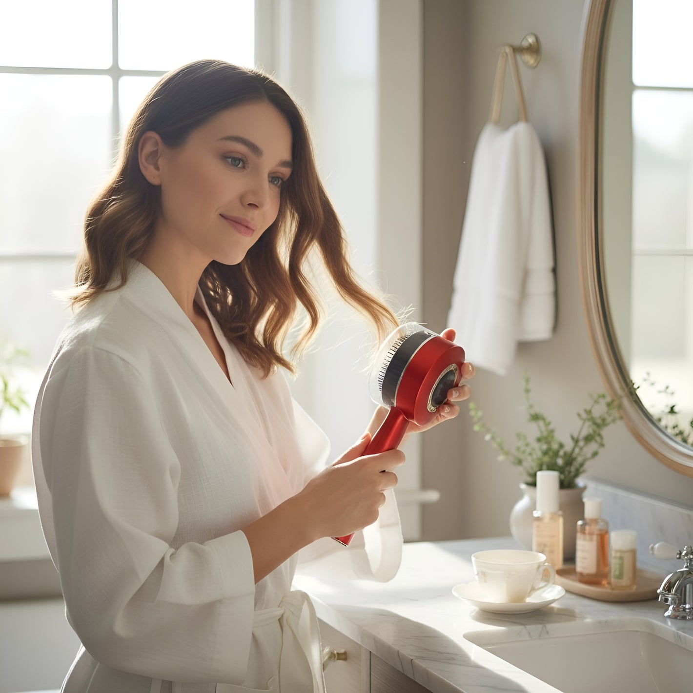 This device combines microcurrent, red light therapy, and 3D massage heads giving you a professional level scalp treatment at home, not just a brush.