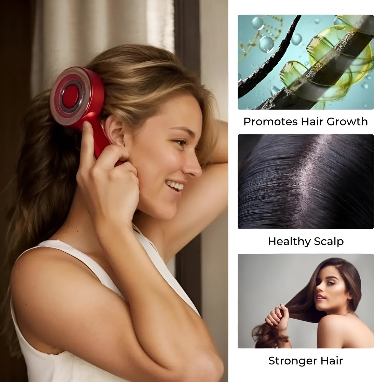 Your scalp quietly ages faster than your face. Built up oil, stress, and tightness slow hair growth and weaken roots this smart tool restores balance where it starts: the scalp.